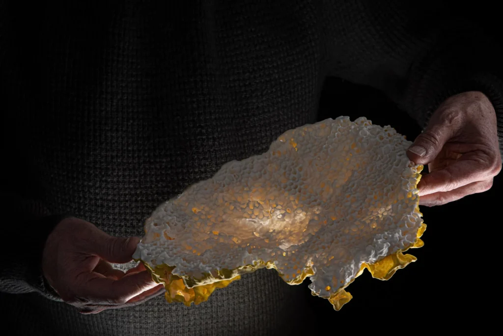 Hornetcomb wit met geel poselein, 30 x 26 x 8 cm, foto Aleks Droog